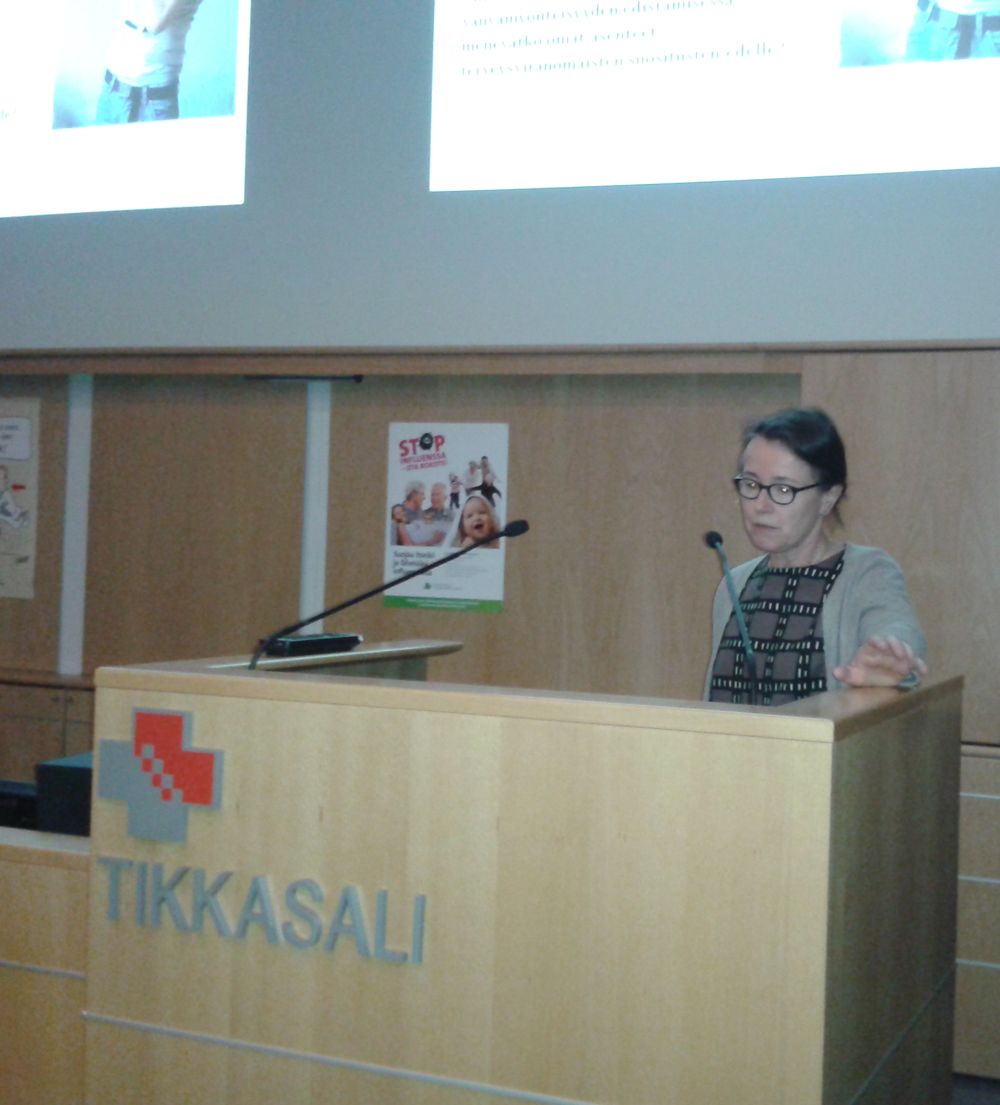 Mari Juuti, lastentautien erikoislääkäri, puhui sairaana syntyvän lapsen tilanteeseen liittyvistä eettisistä kysymyksistä ja työtä tukevista näkökulmista.