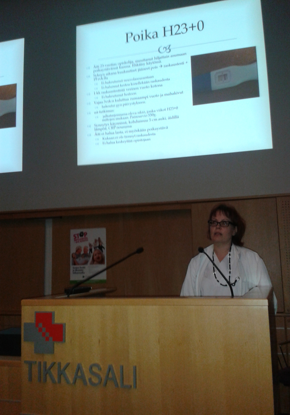 Kirsti Päivinen, kätilö ja osastonhoitaja, puhui ns. normaalisynnytyksiin ja lapsivuodeaikaan liittyvistä eettisistä liittyvistä kysymyksistä.